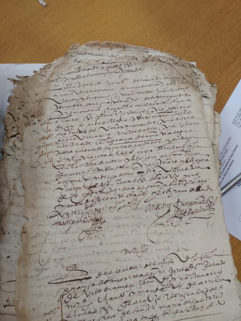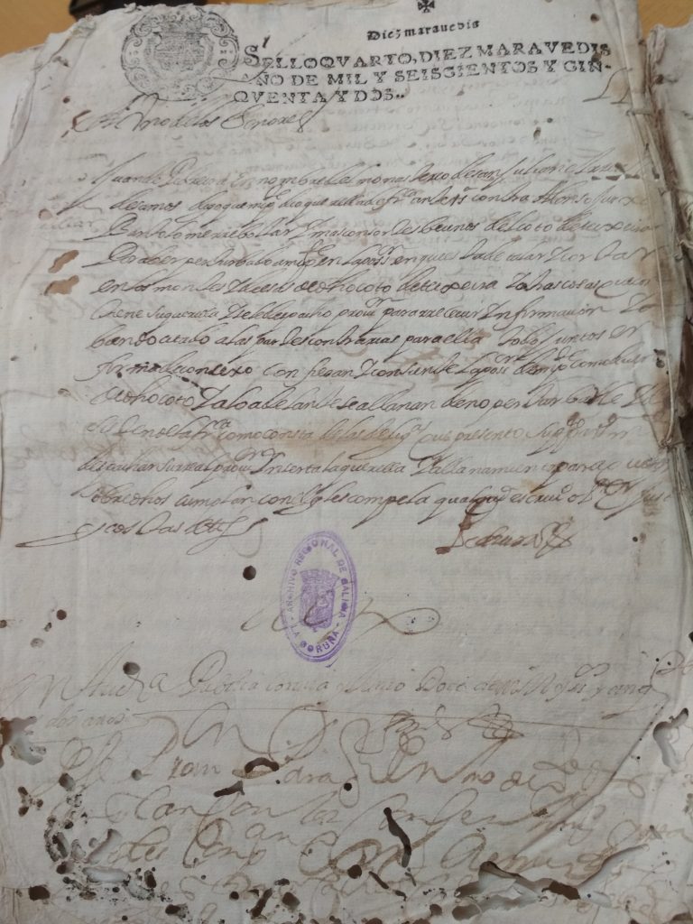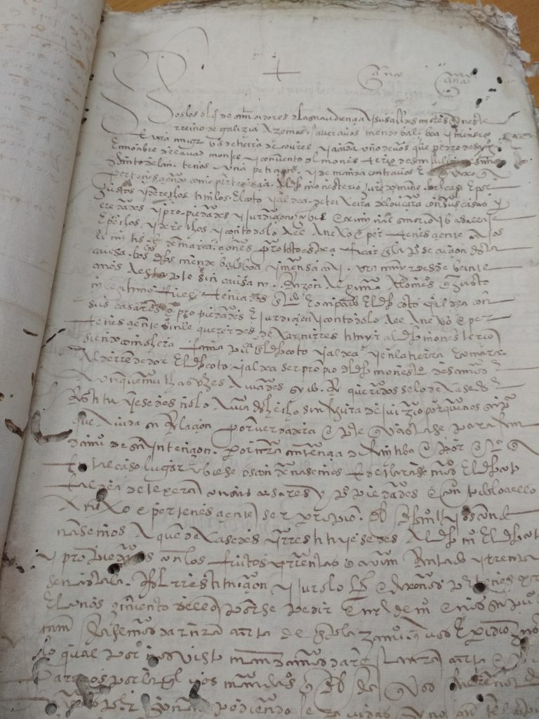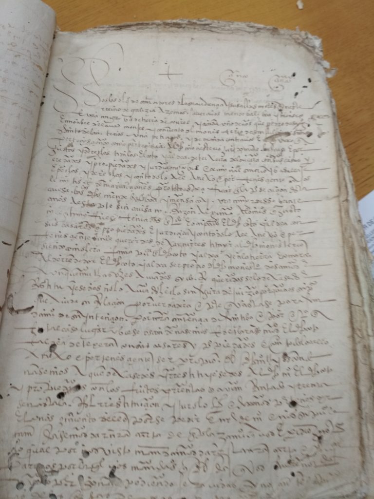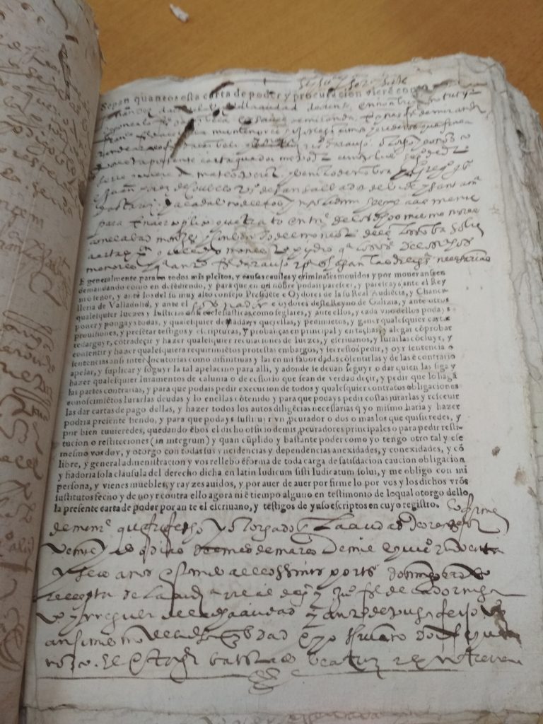 Tras unha visita ó Antigo Reino de Galicia, na Coruña; topamos cun libro en mal estado, e unha letra de pluma , dificil de descifrar. Se conseques transcribir algo e enviasnolo desde o apartado de Contáctanos; estaremosche moi agradecidos