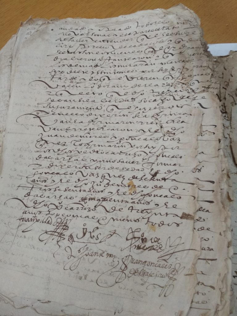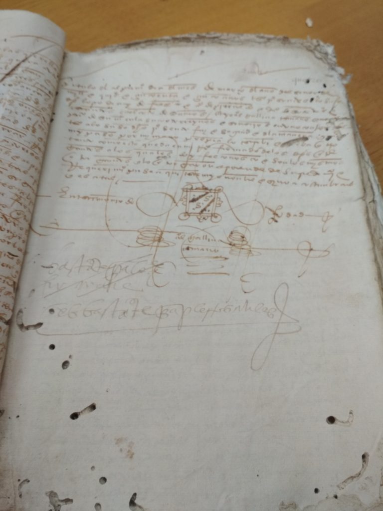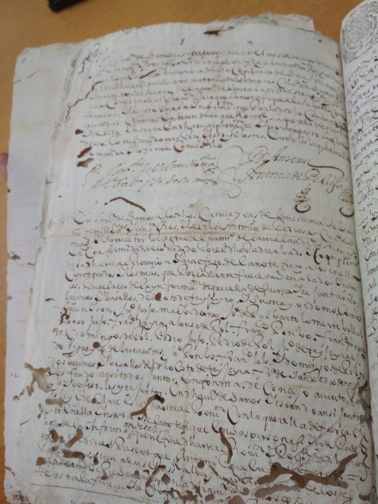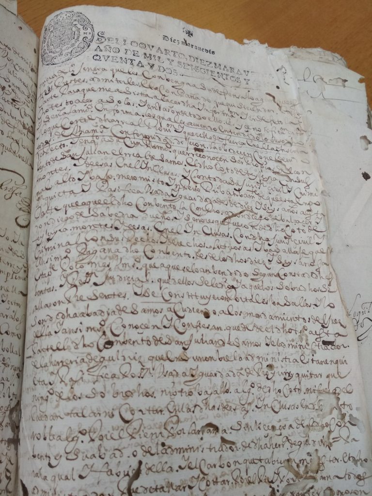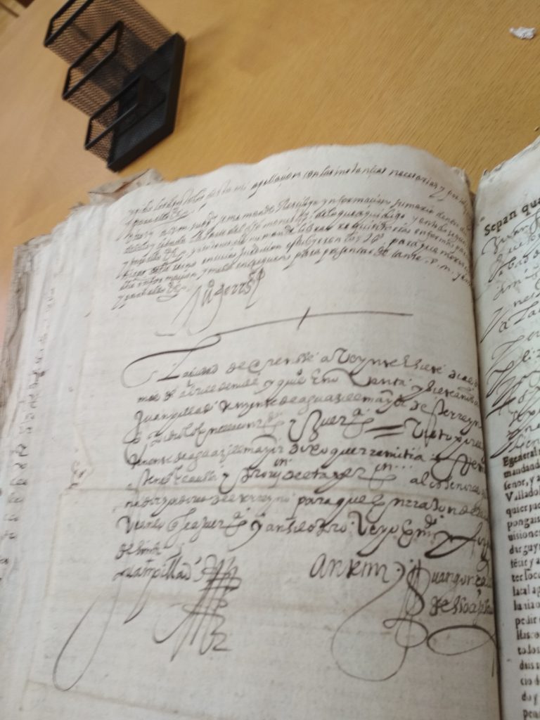 Tras unha visita ó Antigo Reino de Galicia, na Coruña; topamos cun libro en mal estado, e unha letra de pluma , dificil de descifrar. Se conseques transcribir algo e enviasnolo desde o apartado de Contáctanos; estaremosche moi agradecidos