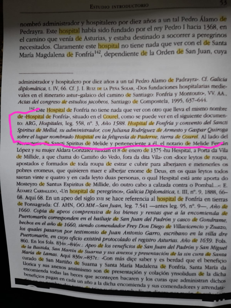 O Catastro da Ensenada 1752 que recollia en cada aldea o que había, fala do prado do Hospital en Paderne (Hospital de Peregrinos)