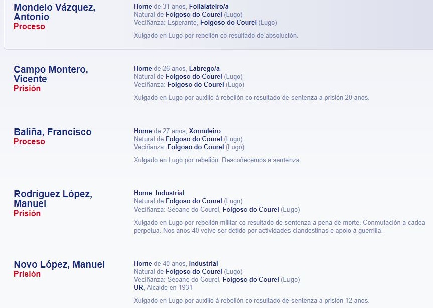 Durante a Guerra e a Posguerra, cometéronse miles de tropelias e abusos. Queremos honrar os nomes desas persoas que sufriron de primeira man , o ferro dos falanxistas. 43 nomes , que se saiba. Ós que non queremos que o tempo os borre: